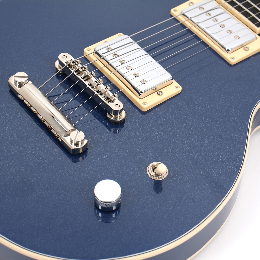 We have fitted pickups from a small Bavarian company, NoWaxx, dedicated to producing the very best handwound products. At the neck is a classic P90 while at the bridge is a beefy humbucker, both of which were produced exclusively to our specifications. These two allow the player an extensive range of tones to suit every mood. Part of the design brief was to keep the controls simple but effective. The Professional has a master volume and a three-way switch. Sometimes simple is better and with the two controls on the Professional, this is certainly true. The tuners are of the enclosed type, from Schaller. A traditional stop tailpiece and tunamatic bridge are used to give the best tonal characteristics for this type of guitar.