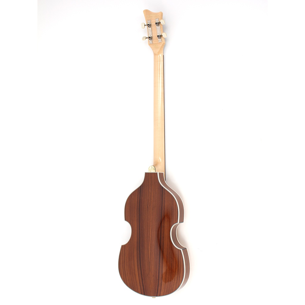 Specially prepared and finished by our master luthiers in the workshops of Höfner in Hagenau, Germany this single bass features a spruce top and rosewood back and sides. The back is spectacular with a wonderful book-matched piece of rosewood. Fitted with twin Hofner "staple" pickups and the traditional Hofner control panel this bass will produce that unique Hofner tone so loved by bass players worldwide. The use of specuial wood in the construction gives this bass a distinctive and unique look, contemporary and classic.