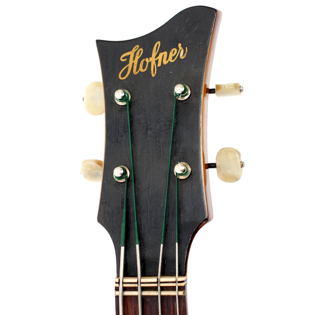 It has a spruce top, flame maple back and sides, a three-piece neck (maple/beech/maple) and the classic script logo at the head. The neck is of the 61 profile, slightly thicker and preferred by many bass players for its grip and feel. On the back of the head, you will find the classic two-on-a-strip tuners. On the body are a pair of the classic H510B “Cavern” pickups mounted in the wide spaced configuration to offer a broader range of tonal possibilities.