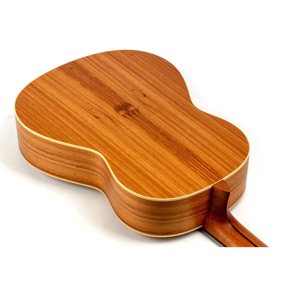 Solid cedar top, bottom and sides of mahogany. Silk matt varnish, scale 650mm, saddle width 50mm.