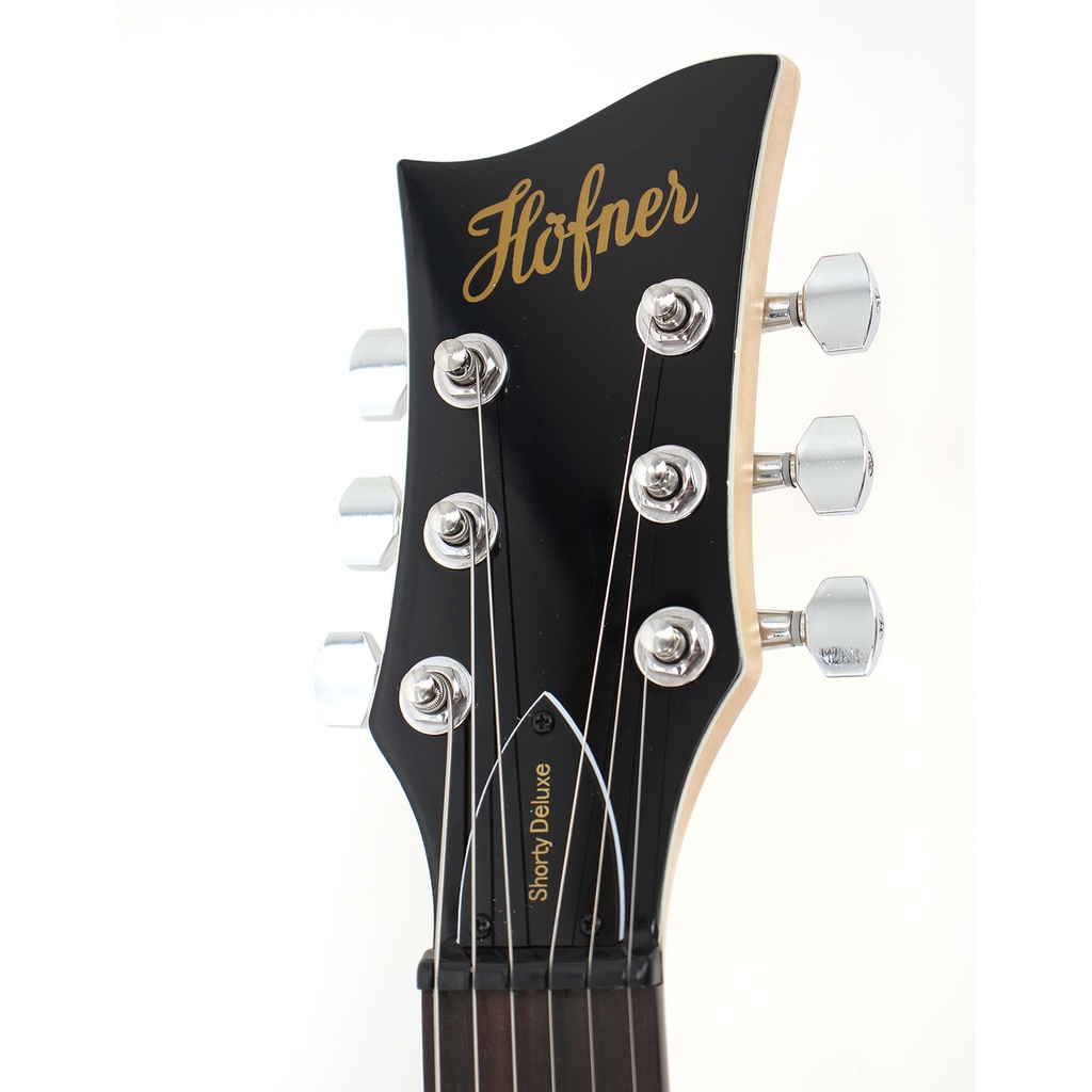 The perfect travelling companion just got even better – introducing the new Hofner Shorty Deluxe. Offering versatility and convenience in the one compact package, the deluxe model offers the same full-scale length and small overall dimensions as the original model, making it ideal for playing anywhere at any time, whether on the couch or on the road. What takes the Shorty Deluxe to the next level is the addition of twin Humbucker pick-ups, giving an extended range of tonal values to get the sound and warmth you want. And it looks just as great as it sounds, with a new headstock design reflecting the classic Hofner style. This guitar will fit in most overhead lockers in aircraft and comes with a durable, padded Hofner gig bag.