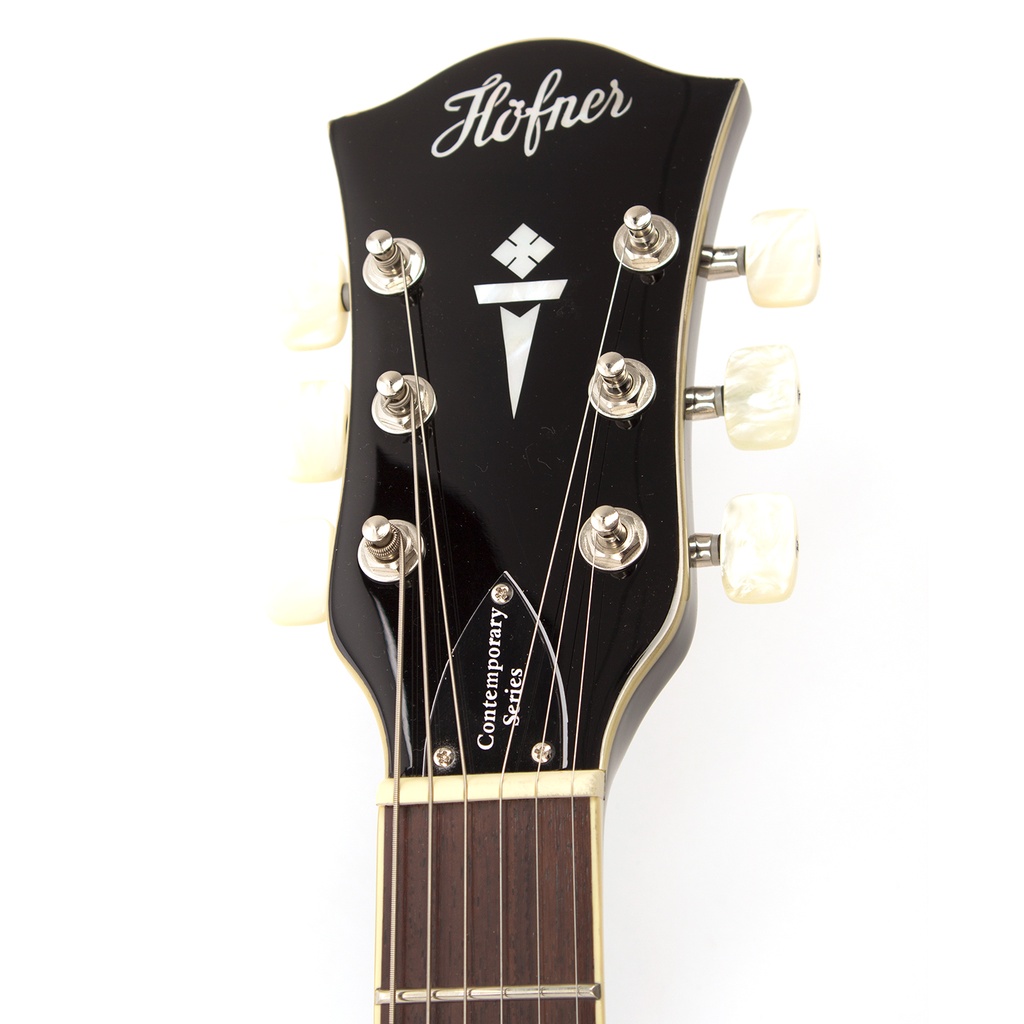 The Contemporary model is fitted with full size Höfner humbuckers that deliver full on tone letting you use this guitar for a wide variety of styles from blues through to full on heavy rock. With a solid spruce centre sustain block you achieve even more sustain, better volume and less feedback. The genuine Bigsby vibrato is used in combination with a roller bridge for perfect tuning and playing. With a spruce top, maple back and sides this is the perfect alternative semi-acoustic guitar.