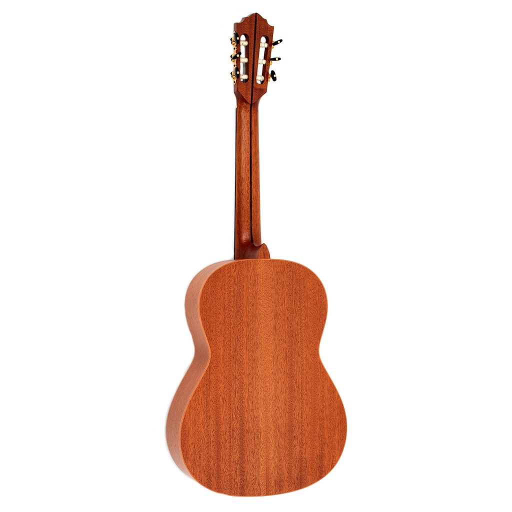 A solid mahogany body and a spruce top give a clear and balanced tone. The spruce top in particular was specially selected for the clarity of its bright tones and its excellent sound projection. The satin finish lends a stylish aspect to the instrument’s appearance, as well as aiding the sustained response and great dynamics.