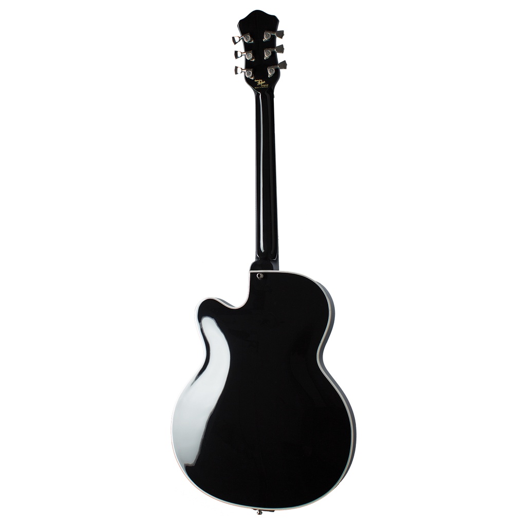 Twin pick-up thinline guitar with solid hand carved centre block. Vintage voiced humbucking pick-ups with coil taps. Volume (push/pull for coil tap) and tone controls plus three way switch. Spruce top, maple back, sides and neck. Ebony fingerboard. Genuine Bigsby vibrato. Available in black. Incl. Höfner Deluxe case.